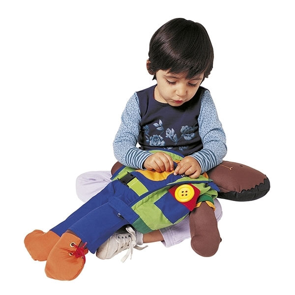 Μεγάλη υφασμάτινη κούκλα που βοηθάει τα παιδιά να αναπτύξουν τη λεπτή κίνηση. Τα ρούχα τους έχουν διάφορα δεσίματα (κλιπ, κουμπιά, φερμουάρ, κορδόνια, ζώνη, velcro, και άλλα). Ύψος κούκλας: 62cm Πλένεται στους 30?C.