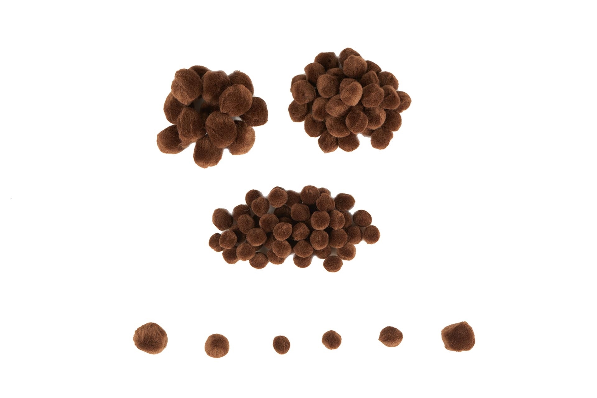 Σετ 100 καφέ pom-pom (διαμέτρου: 0,5cm, 1,0cm, 1,5cm). Δίνουν μία ευχάριστη νότα σε κάθε χειροτεχνία.