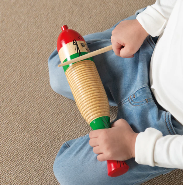 Ανακαλύψτε τον συναρπαστικό κόσμο των κρουστών με το Ξύλινο Γκίρο της MyPauze (κωδικός 82447). Αυτό το κλασικό όργανο ρυθμού παράγει έναν χαρακτηριστικό, τραχύ ήχο καθώς το ξυλάκι σύρεται πάνω στην ανάγλυφη επιφάνειά του. Είναι ένας διασκεδαστικός τρόπος για να εξερευνήσουν τα παιδιά διαφορετικούς τόνους και να δημιουργήσουν ρυθμούς που δίνουν ζωή στη μουσική τους. Το γκίρο αποτελεί ένα εξαιρετικό εργαλείο για την ανάπτυξη των ρυθμικών δεξιοτήτων και του συντονισμού, ενώ ενθαρρύνει τη δημιουργική αλληλεπίδραση. Το σετ περιλαμβάνει το ειδικό ξυλάκι (scraper) για μια ολοκληρωμένη μουσική εμπειρία από την πρώτη στιγμή.Τεχνικά Χαρακτηριστικά:Μήκος: 32 cmΒάρος: 300 gΥλικό: Φυσικό Ξύλο FSC® 100%
