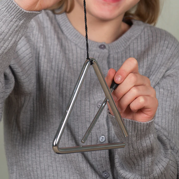 Προσθέστε μια λαμπερή νότα στη μουσική σας με το Μουσικό Τρίγωνο της MyPauze (κωδικός 82448). Αυτό το κλασικό όργανο ρυθμού παράγει έναν καθαρό, κρυστάλλινο ήχο που ξεχωρίζει σε κάθε μουσικό σύνολο. Είναι εξαιρετικά εύκολο στη χρήση – το παιδί απλώς κρατά το τρίγωνο και το χτυπά με τη μεταλλική ράβδο (beater) που περιλαμβάνεται, δημιουργώντας ρυθμούς που εμπλουτίζουν τη μελωδία. Αποτελεί έναν υπέροχο τρόπο για να εισαχθούν τα παιδιά σε βασικές μουσικές έννοιες, όπως ο χρονισμός και η δυναμική του ήχου. Το παιχνίδι με το τρίγωνο ενθαρρύνει τη συνεργασία και δίνει στο παιδί την ικανοποίηση ότι συμβάλλει ενεργά στο συνολικό άκουσμα της ομάδας. Τεχνικά Χαρακτηριστικά: Διάσταση: 12 cm Βάρος: 170 g Υλικό: Υψηλής ποιότητας Ατσάλι (Steel) Περιεχόμενα: Περιλαμβάνει μεταλλική ράβδο κρούσης (beater) Χρήση: Ρυθμική αγωγή, μουσικά σύνολα, ανάπτυξη προσοχής