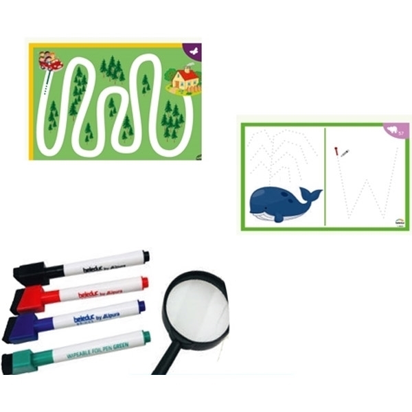 Έτοιμοι για το πρώτο κουδούνι; Το Beleduc Fit For School 2 (29010) είναι ο ιδανικός σύμμαχος για την ομαλή μετάβαση των παιδιών στον κόσμο του σχολείου. Μέσα από 60 κάρτες δραστηριοτήτων, οι μικροί μαθητές εξασκούνται στον σχεδιασμό καμπύλων γραμμών και μοτίβων, ενώ παράλληλα ανακαλύπτουν τα γράμματα και τους αριθμούς. Το σετ περιλαμβάνει 4 μαρκαδοράκια που σβήνουν εύκολα για ατέλειωτες επαναλήψεις, καθώς και έναν μεγεθυντικό φακό που προσθέτει μια νότα μυστηρίου στην αναζήτηση των λύσεων. Κατασκευασμένο από ανθεκτικά υλικά, αυτό το πακέτο ενισχύει τον συντονισμό ματιού-χεριού και τη λεπτή κινητικότητα, κάνοντας την προετοιμασία για τη γραφή μια δημιουργική περιπέτεια γεμάτη αυτοπεποίθηση!