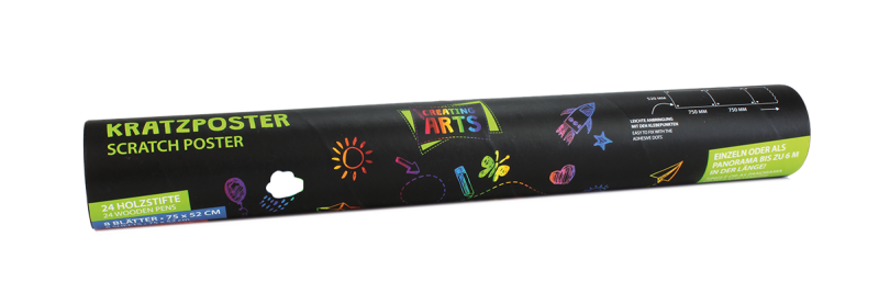 Περιορίστε τα όρια της φαντασίας σας και δημιουργήστε ένα πραγματικό έργο τέχνης σε μέγεθος... γίγας! Το XL Πόστερ Scratch Art της Beleduc (53051) μετατρέπει τη ζωγραφική σε μια συναρπαστική εμπειρία αποκάλυψης. Με τις επιβλητικές διαστάσεις του (750x520mm), αυτό το μαύρο πόστερ κρύβει κάτω από την επιφάνειά του έναν ολόκληρο κόσμο από ζωντανά, φωτεινά χρώματα. Χρησιμοποιώντας το ειδικό ξυλάκι που θα βρείτε στη συσκευασία, χαράξτε τα δικά σας σχέδια και δείτε τις γραμμές σας να μεταμορφώνονται «μαγικά» σε πολύχρωμα μονοπάτια του ουράνιου τόξου. Το σετ είναι μελετημένο για να ολοκληρώσει τη διακόσμηση του χώρου σας, καθώς περιλαμβάνει ειδικά αυτοκόλλητα για να στερεώσετε το έργο σας πάνω σε τοίχους, πόρτες ή οποιαδήποτε άλλη επιφάνεια επιθυμείτε. Επειδή το μέγεθος είναι XL, το πόστερ προσφέρεται για πολύωρη δημιουργική απασχόληση ή ακόμα και για να δουλέψουν μαζί πολλά παιδιά, δημιουργώντας μια κοινή καλλιτεχνική ιστορία!