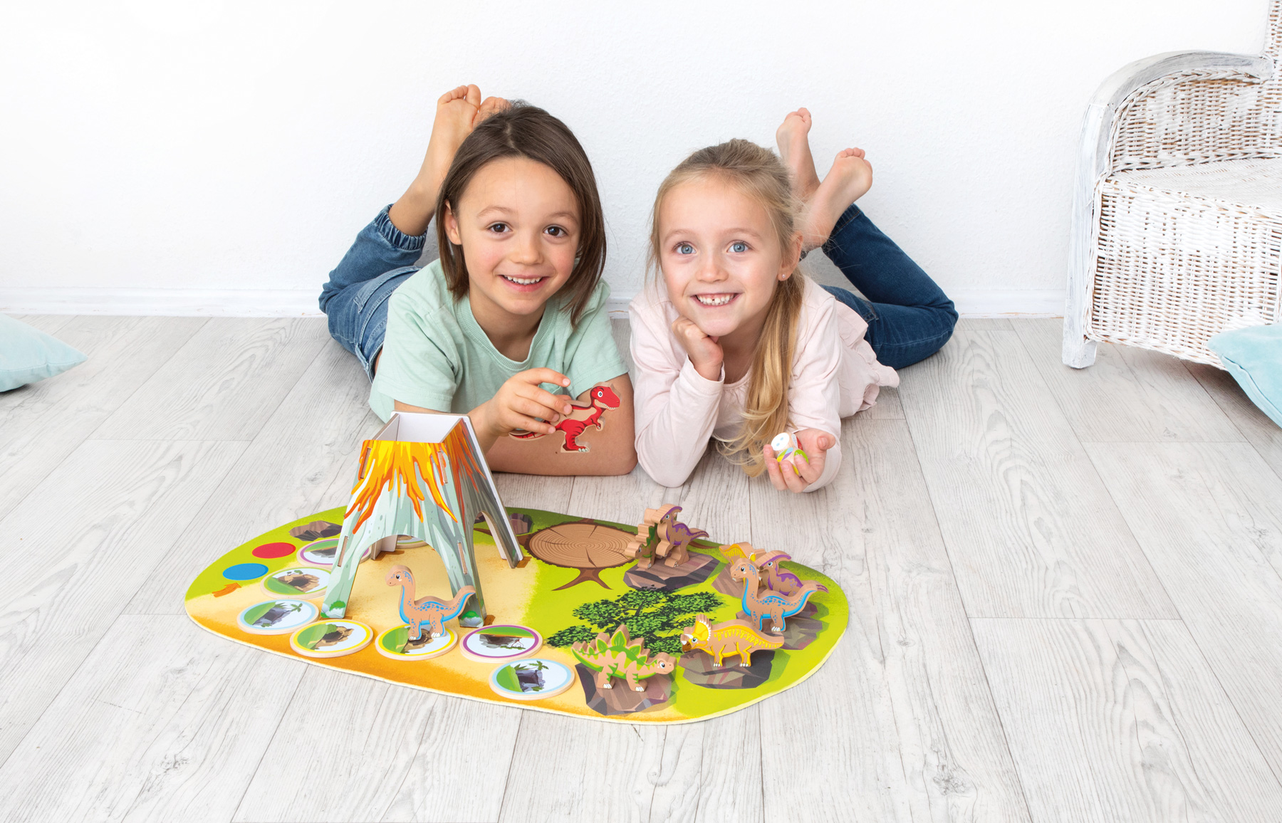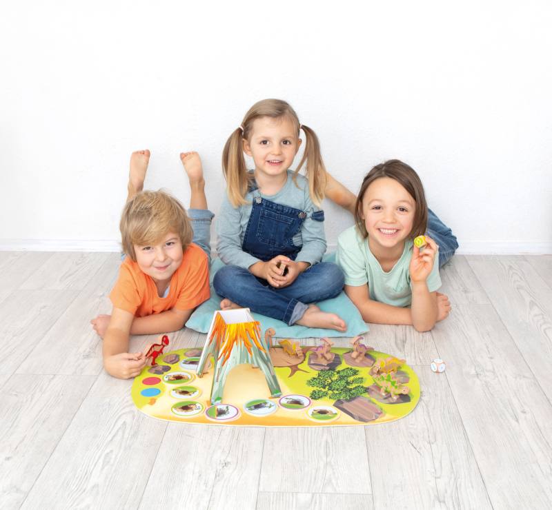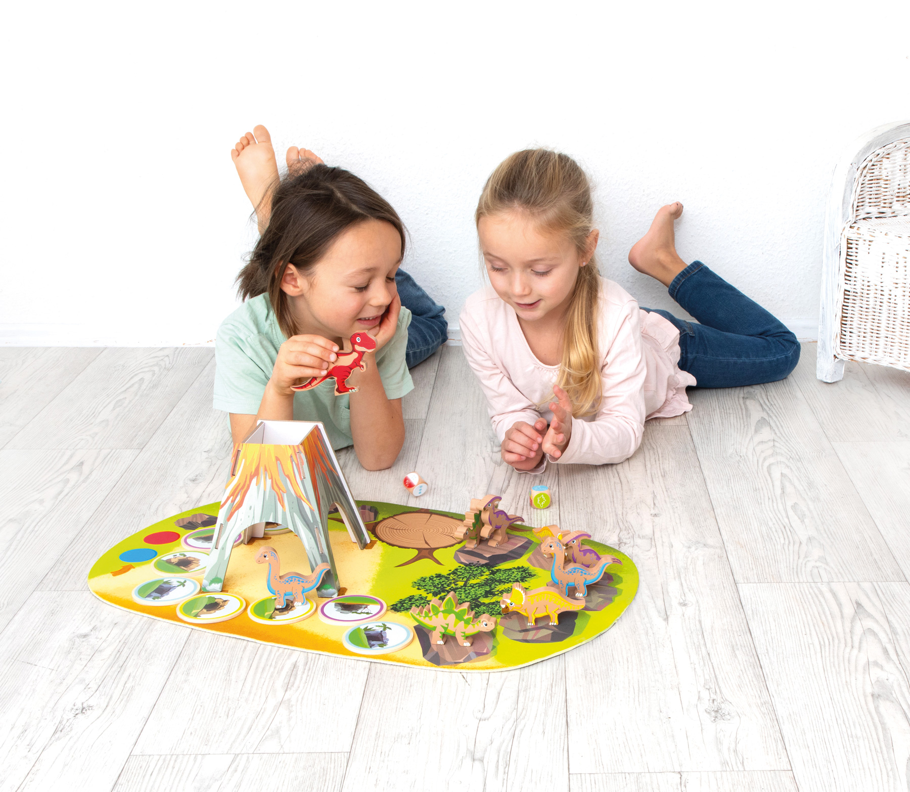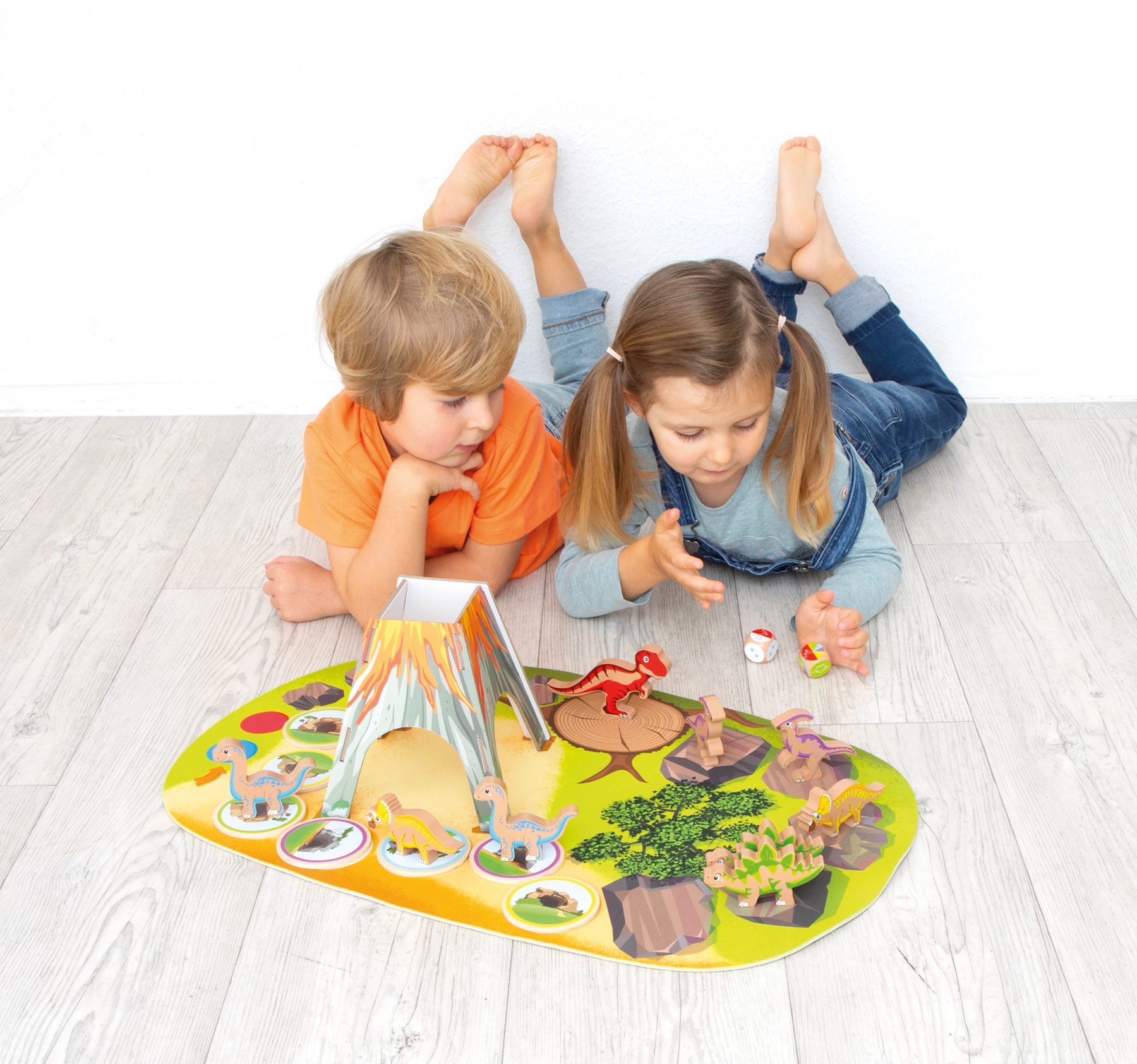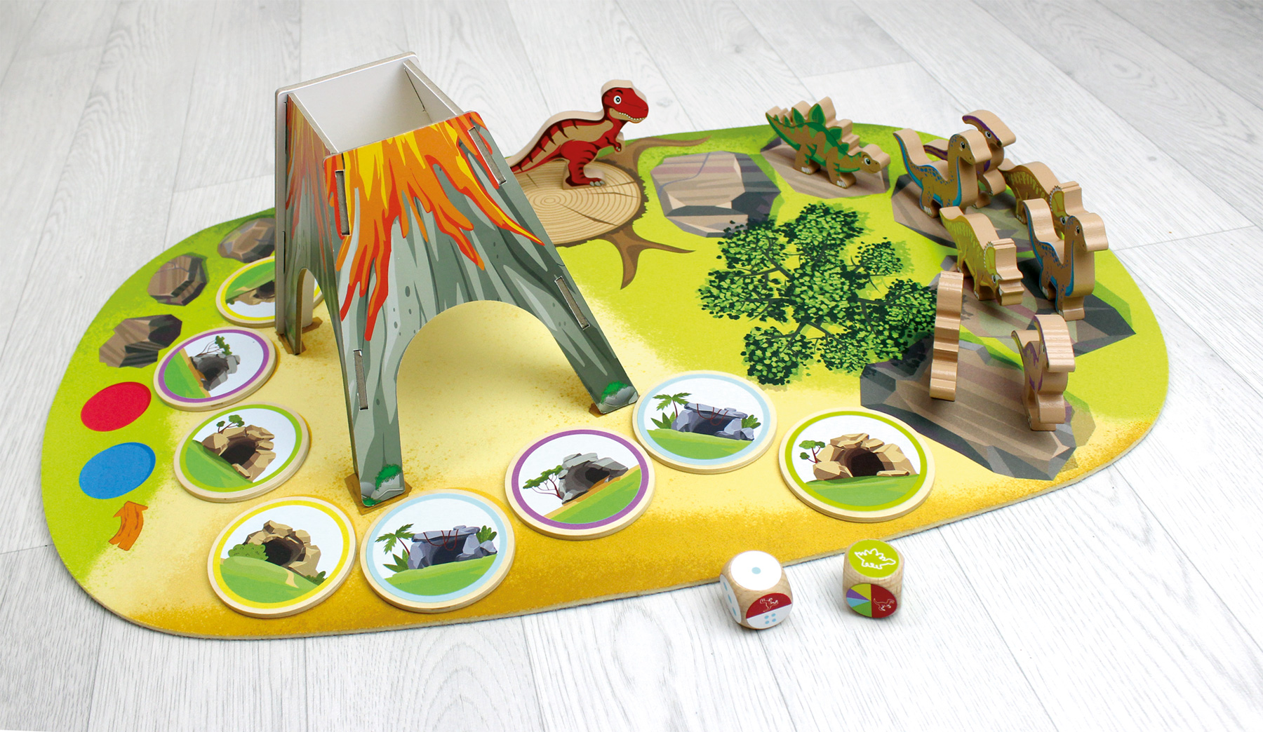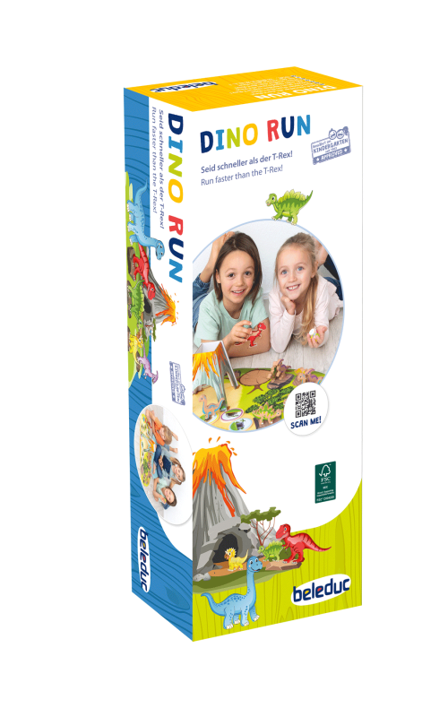 Η περιπέτεια ξεκινά στην προϊστορική εποχή με το Dino Run. Στόχος της ομάδας είναι να καθοδηγήσει τα ξύλινα δεινοσαυράκια με ασφάλεια στη σπηλιά, προτού ο κόκκινος T-Rex προλάβει να τα φτάσει. Ένας αγώνας ταχύτητας, αλλά και μια στοχευμένη άσκηση στρατηγικής σκέψης και επικοινωνίας, όπου το αποτέλεσμα είναι ομαδικό: όλοι κερδίζουν ή όλοι χάνουν μαζί. Το σετ περιλαμβάνει ανθεκτικά ξύλινα στοιχεία επαγγελματικής σειράς, ιδανικά και για ελεύθερο παιχνίδι, ενισχύοντας τη φαντασία και τη λεπτή κινητικότητα.