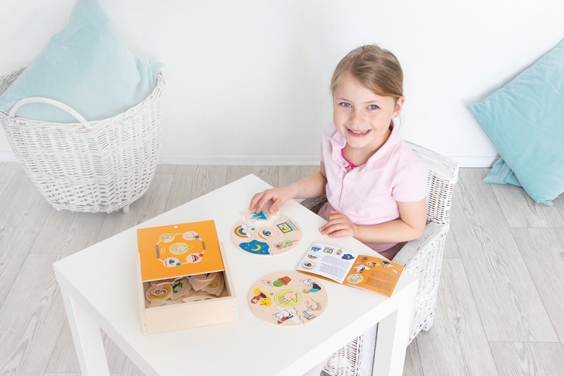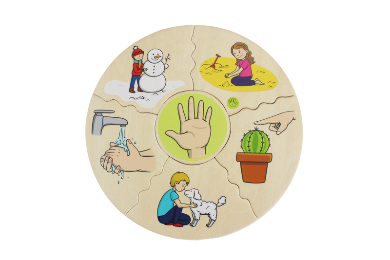 Το Beleduc 11556 Humanico – 5 Αισθήσεις είναι ένα εκπαιδευτικό σετ που περιλαμβάνει 5 ξύλινα παζλ, 6 κομμάτια το καθένα, με θέμα τις 5 βασικές αισθήσεις: όραση, ακοή, γεύση, όσφρηση και αφή. Κάθε παζλ βοηθά τα παιδιά να κατανοήσουν τι είναι και πώς λειτουργεί κάθε αίσθηση, μέσα από ζωντανές εικόνες και απλή σύνδεση. Με σύστημα αυτοδιόρθωσης, τα παιδιά μαθαίνουν να διορθώνουν τα λάθη τους μόνα τους — ιδανικό για παιδιά από 3 ετών και άνω, ασφαλές, φιλικό στο περιβάλλον και πλούσιο σε εκπαιδευτικό περιεχόμενο.