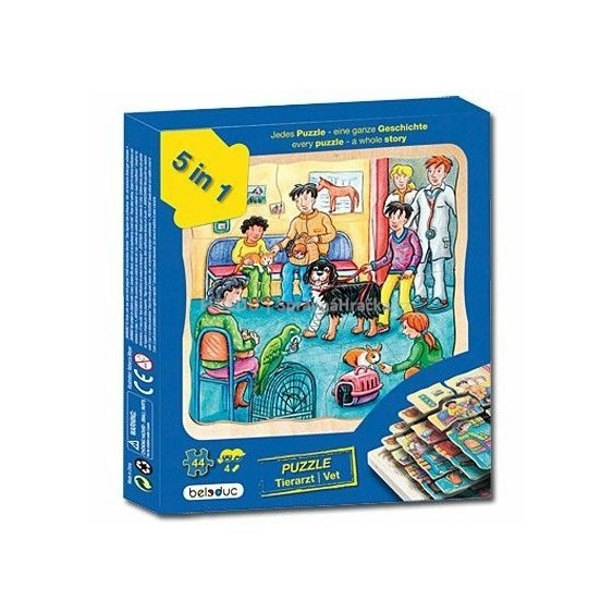 Beleduc 17048 Παζλ 5 Επιπέδων Κτηνιατρείο – Ξύλινο Παζλ για Εξερεύνηση του Κόσμου του Κτηνιάτρου & Ανάπτυξη Λεξιλογίου