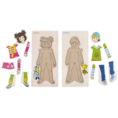 Beleduc 17058 Παζλ Anika & Denis – Σετ 2 Ξύλινων Παζλ Ανακάλυψης Σώματος (2 Επίπεδα, 13 Κομμάτια Καθένα) για Εξοικείωση με τα Τμήματα του Σώματος