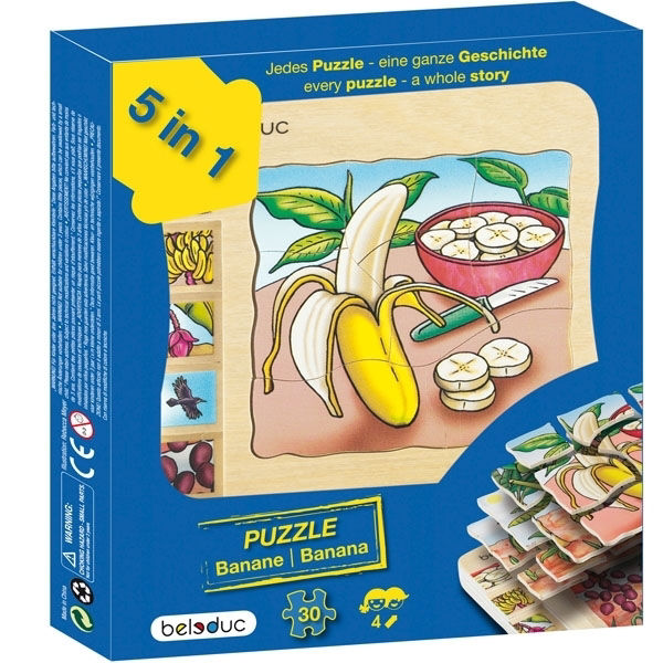 Beleduc 17049 Παζλ Εξέλιξης Μπανάνα – Ξύλινο Παζλ 5 Επιπέδων για Κατανόηση της Ανάπτυξης της Μπανάνας & Ανάπτυξη Λόγου