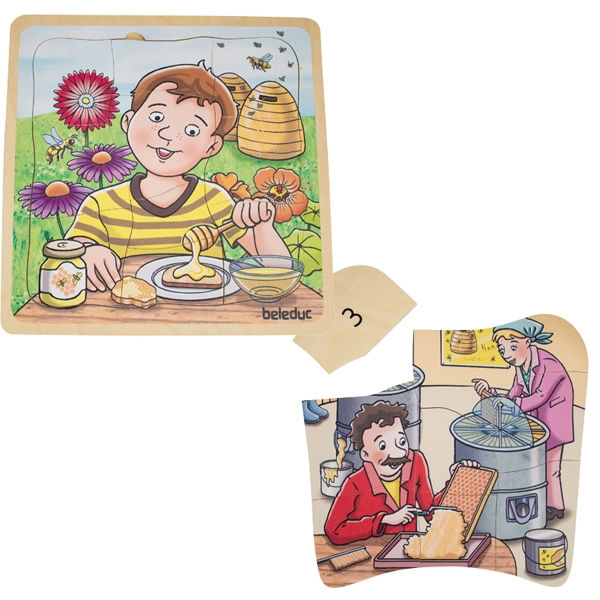 Beleduc 17060 Ξύλινο Παζλ Επιπέδων Μέλι – 5 Επίπεδα για Κατανόηση της Παραγωγής Μελιού από τη Μέλισσα έως το Μπουκάλι