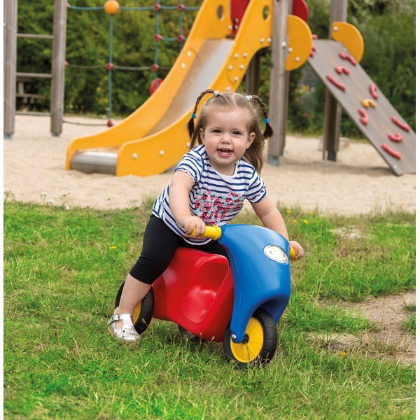 Το Scooter της Dantoy (Κωδ. 33310) αποτελεί ένα βασικό εργαλείο κινητικής εξέλιξης, σχεδιασμένο να προσφέρει στα παιδιά έναν ασφαλή και διασκεδαστικό τρόπο να ανακαλύψουν την κίνηση. Με μήκος 60cm και εργονομικό ύψος καθίσματος 26cm, επιτρέπει στο παιδί να κάθεται αναπαυτικά και να οδηγεί χρησιμοποιώντας τα πόδια του, μια δραστηριότητα που ενισχύει την αίσθηση της ισορροπίας, δυναμώνει τους μυς και βοηθά στον συντονισμό των κινήσεων. Είναι κατασκευασμένο από ανθεκτικό, πλενόμενο πλαστικό υψηλής ποιότητας, εξασφαλίζοντας μέγιστη υγιεινή και αντοχή στον χρόνο. Οι λαστιχένιες ρόδες του προσφέρουν αθόρυβη κύλιση και εξαιρετική πρόσφυση, καθιστώντας το ιδανικό για χρήση τόσο σε εσωτερικά δάπεδα όσο και σε εξωτερικούς χώρους.
