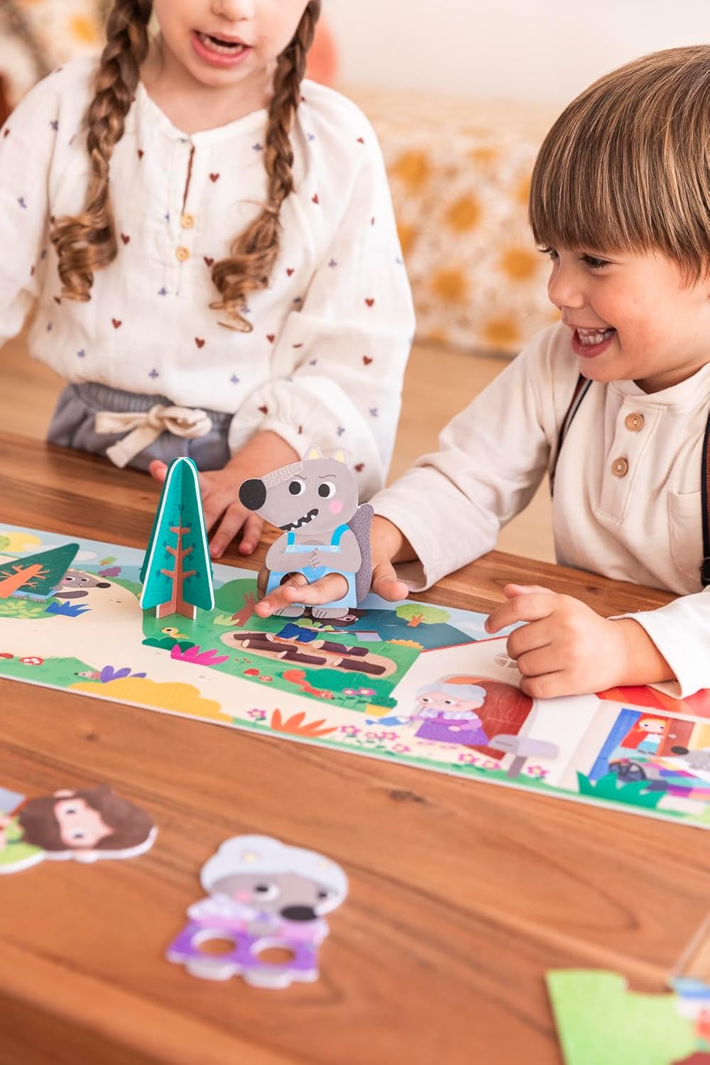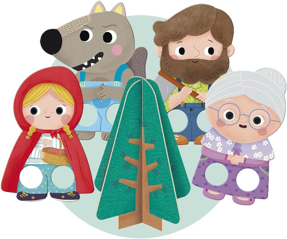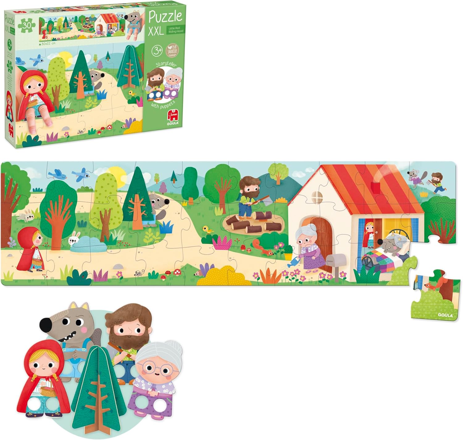 1110700207 GOULA XXL Παζλ Κοκκινοσκουφίτσα | Εντυπωσιακό Παζλ 48 Μεγάλων Κομματιών, 4 Χάρτινες Δαχτυλόκουκλες & Τρισδιάστατο Δέντρο