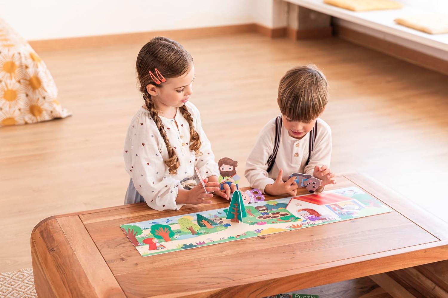Η μαγεία του κλασικού παραμυθιού ζωντανεύει με το XXL Παζλ Κοκκινοσκουφίτσα της GOULA (Κωδ. 1110700207). Αυτό το εντυπωσιακό παζλ, με τα 48 μεγάλα και ανθεκτικά κομμάτια, προσφέρει μια μοναδική εκπαιδευτική και ψυχαγωγική εμπειρία στα παιδιά. Αρχικά, καλούνται να συνθέσουν μια ζωντανή και πολύχρωμη εικόνα που αφηγείται την ιστορία της Κοκκινοσκουφίτσας, με το μεγάλο μέγεθος των κομματιών να διευκολύνει το κράτημα και την τοποθέτηση από τα μικρά χέρια. Η διασκέδαση όμως δεν σταματά στη σύνθεση! Το σετ περιλαμβάνει 4 χάρτινες δαχτυλόκουκλες με τους βασικούς χαρακτήρες (Κοκκινοσκουφίτσα, Λύκος, Γιαγιά, Κυνηγός) και ένα τρισδιάστατο δέντρο, επιτρέποντας στα παιδιά να αναπαραστήσουν την ιστορία και να δημιουργήσουν τις δικές τους περιπέτειες μέσω του θεατρικού παιχνιδιού.