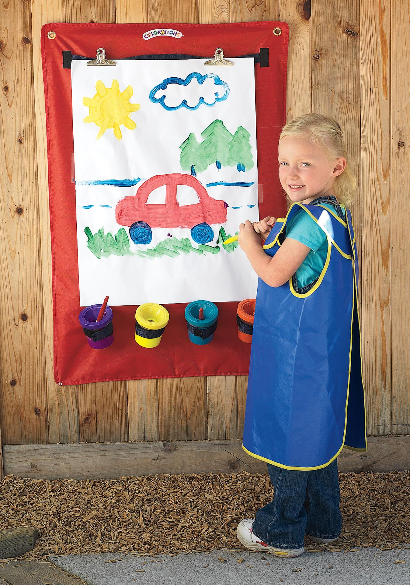 Ζωγραφίστε, σχεδιάστε, παρουσιάστε, όπου και αν βρίσκεστε, σε εσωτερικό ή εξωτερικό χώρο. Κρεμάστε το καβαλέτο πανό και εξοικονομήστε χώρο από το πάτωμα. Συμπεριλαμβάνονται 2 κλιπς για να στερεώνετε το χαρτί και υποδοχές για κυπελλάκια, για τις μπογιές σας. Διαστάσεις: 60x90x0,6(πάχος)cm