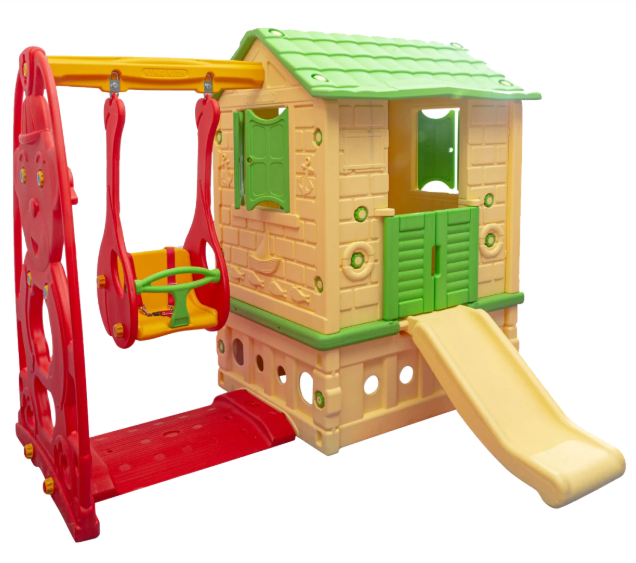 King Kids KH2020Y Πλαστικό Σπιτάκι με Κούνια, Τσουλήθρα & Πάτωμα (Πολύχρωμο)