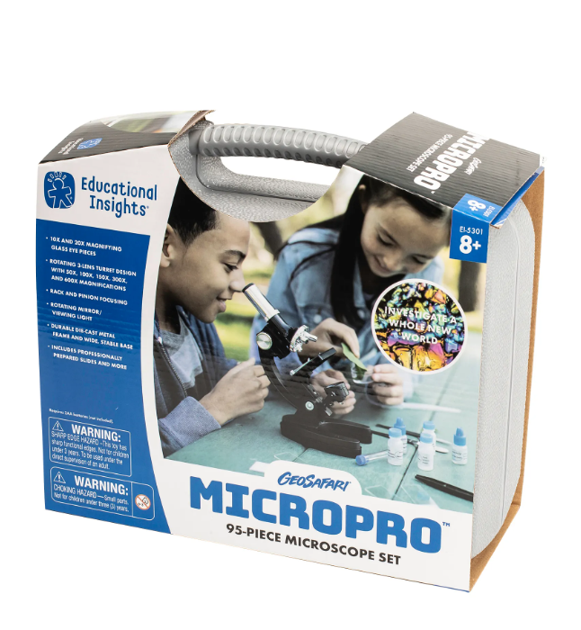 Ανακαλύψτε έναν αόρατο κόσμο με το πιο πλήρες εργαστήριο βιολογίας! Το GeoSafari MicroPro της Learning Resources (5301) είναι ένα σετ μικροσκοπίου 95 τεμαχίων, ειδικά σχεδιασμένο για να εμπνεύσει την επόμενη γενιά επιστημόνων. Με γυάλινους προσοφθάλμιους φακούς και δυνατότητα μεγέθυνσης έως και 600x, τα παιδιά μπορούν να μελετήσουν τα πάντα, από κύτταρα φυτών μέχρι κρυστάλλους αλατιού. Το σετ περιλαμβάνει όλα τα απαραίτητα εργαλεία —τρυβλία petri, πιπέτες, καλυπτρίδες και οδηγό δραστηριοτήτων— ενισχύοντας την παρατήρηση και τη βιωματική μάθηση. Είναι το ιδανικό επιστημονικό εργαλείο για να καλλιεργηθεί η αγάπη για τις φυσικές επιστήμες μέσα από την εξερεύνηση! (Απαιτούνται 2 μπαταρίες ΑΑ, δεν περιλαμβάνονται).
