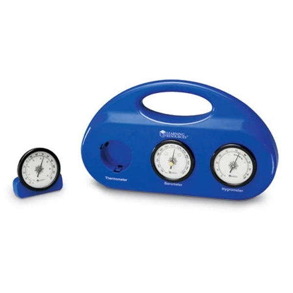 Γίνετε μικροί μετεωρολόγοι στο σπίτι σας! Ο LΕR2940 Σταθμός Καιρού της Learning Resources είναι ένα ολοκληρωμένο σετ για να μετράτε και να μελετάτε τον καιρό κάθε μέρα. Περιλαμβάνει τρία βασικά όργανα: ένα βαρόμετρο για την ατμοσφαιρική πίεση, ένα υδρόμετρο για την υγρασία και ένα θερμόμετρο για τη θερμοκρασία (σε Celsius και Fahrenheit). Το έξυπνο αυτό σετ σάς επιτρέπει να χρησιμοποιήσετε τα όργανα όλα μαζί στον κεντρικό σταθμό ή να τα πάρετε μαζί σας ξεχωριστά, αφού περιλαμβάνει 3 αποσπώμενες βάσεις στήριξης. Είναι κατασκευασμένο από ανθεκτικό πλαστικό και είναι πολύ εύκολο στη χρήση, βοηθώντας τα παιδιά να κατανοήσουν τα φυσικά φαινόμενα μέσα από την πράξη και την παρατήρηση.