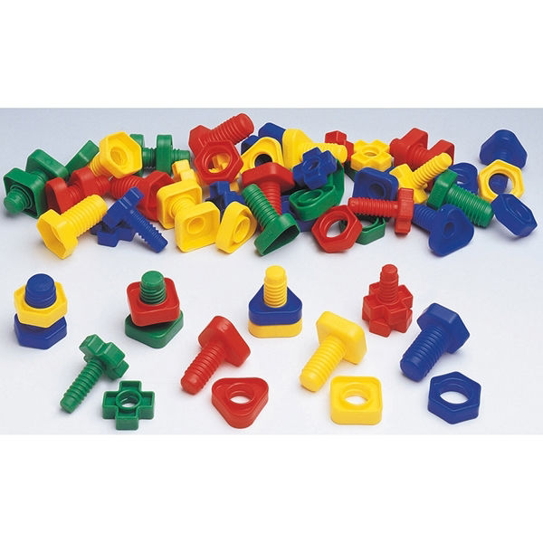 Σετ 32 βίδες και 32 παξιμάδια σε 4 σχήματα, 4 χρώματα και 4 διαμέτρους. Ύψος: 6cm Διάμετρος βίδας: 2,7/2,3/2,1/1,7cm Πλάτος παξιμαδιού: 4,8/4,5/4cm