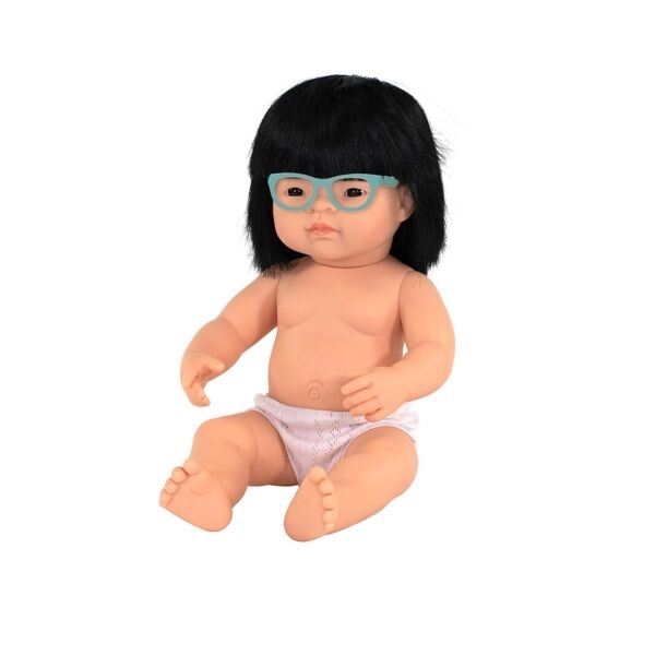 Miniland 31112 Κούκλα με Γυαλιά 38cm - Πλενόμενη & Ρεαλιστική