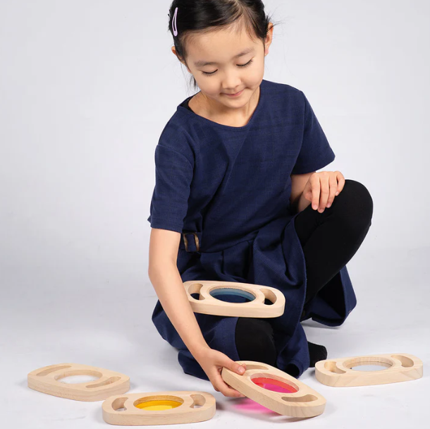 Ανοίξτε έναν νέο κόσμο εξερεύνησης για τα παιδιά σας με τα Αισθητηριακά Χρωματιστά Πάνελ της MyPauze (κωδικός 82259). Το σετ περιλαμβάνει 3 πάνελ σε μπλε, ροζ και κίτρινο χρώμα, τα οποία αλλάζουν τον τρόπο που το παιδί αντιλαμβάνεται το περιβάλλον του. Κοιτάζοντας μέσα από αυτά, ο κόσμος αλλάζει χρώμα, προσφέροντας μια μοναδική οπτική εμπειρία. Τα πάνελ μπορούν να τοποθετηθούν το ένα πάνω στο άλλο για τη δημιουργία νέων χρωματικών συνδυασμών, ενώ λειτουργούν εξαιρετικά πάνω σε φωτοτράπεζες (light tables), μεγιστοποιώντας την αισθητηριακή μάθηση και το παιχνίδι. Κατασκευασμένα από φυσικό ξύλο και ασφαλές ακρυλικό, είναι το τέλειο εργαλείο για την κατανόηση των χρωμάτων και του φωτός. Τεχνικά Χαρακτηριστικά Ποσότητα: 3 τεμάχια (Κίτρινο, Ροζ, Μπλε) Διαστάσεις: 18 x 12 x 3 cm Βάρος: 160g Υλικό: Ξύλο FSC®100%, Ακρυλικό