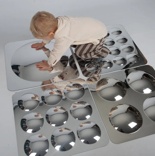 Πολλαπλασιάστε τη διασκέδαση και την ανακάλυψη με τον Γιγάντιο Καθρέπτη με 4 Θόλους της MyPauze (κωδικός 82295). Σε αντίθεση με έναν απλό καθρέπτη, αυτό το πάνελ διαθέτει τέσσερις κυρτές επιφάνειες που δημιουργούν ένα συναρπαστικό "μωσαϊκό" παραμορφωμένων ειδώλων. Τα παιδιά λατρεύουν να βλέπουν τον εαυτό τους να αλλάζει σχήμα και να πολλαπλασιάζεται, γεγονός που εξάπτει την περιέργειά τους για το πώς λειτουργεί το φως και η όραση. Είναι κατασκευασμένος από ελαφρύ, άθραυστο ακρυλικό, προσφέροντας ένα απόλυτα ασφαλές περιβάλλον για ατέλειωτες ώρες δημιουργικού παιχνιδιού και οπτικής εξερεύνησης στο δωμάτιο ή τον παιδότοπο. Διαστάσεις: 50 x 50 cm Βάρος: 600 g Υλικό: Ακρυλικό (Safe & Lightweight)