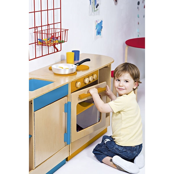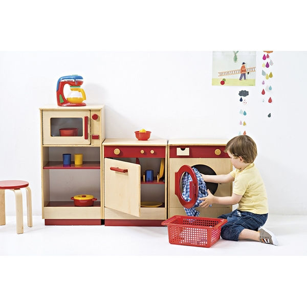 Η οργάνωση της κουζίνας αποκτούν μια ζωντανή και γεμάτη ενέργεια διάσταση με αυτό το στιβαρό κόκκινο ψυγείο της Nathan, το οποίο είναι σχεδιασμένο για να αποτελέσει το επίκεντρο της γωνιάς του σπιτιού. Τα παιδιά έχουν τη δυνατότητα να ταξινομήσουν τα αντικείμενα στα δύο ευρύχωρα εσωτερικά ράφια, ενώ η λεπτομέρεια στην κατασκευή επεκτείνεται και στην πόρτα, η οποία ενσωματώνει δύο επιπλέον θήκες, ιδανικές για την τοποθέτηση μπουκαλιών ή αυγών. Αυτή η διαρρύθμιση ενισχύει την οπτική διάκριση και τη λεπτή κινητικότητα των μικρών χρηστών, προσφέροντας μια απόλυτα ρεαλιστική εμπειρία παιχνιδιού. Η ευελιξία του επίπλου ολοκληρώνεται με την αφαιρούμενη βάση του, η οποία επιτρέπει τη ρύθμιση του ύψους στα 50cm ή τα 55cm, διασφαλίζοντας ότι το ψυγείο παραμένει εργονομικό και προσβάσιμο καθώς τα παιδιά μεγαλώνουν, αποτελώντας μια διαχρονική προσθήκη που αντέχει στον χρόνο και τις καθημερινές δοκιμασίες της φαντασίας. Διαστάσεις: 42x34x50cm/55cm (με τη βάση)
