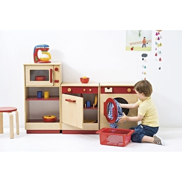 Η πολυλειτουργική μονάδα Plus της Nathan μεταμορφώνει τη γωνιά της κουζίνας σε έναν ολοκληρωμένο σταθμό δράσης, με ένα εντυπωσιακό κόκκινο έπιπλο. Ο έξυπνος σχεδιασμός του προσφέρει στα παιδιά έναν σταθερό νεροχύτη για την καθαριότητα, ένα ενσωματωμένο ψυγείο για τη διατήρηση των τροφίμωννκαι δύο ευρύχωρα αποθηκευτικά ράφια για την οργάνωση των σκευών. Η εμπειρία του παιχνιδιού απογειώνεται με τη στρογγυλή επιφάνεια εργασίας, η οποία προσφέρει τον ιδανικό χώρο για την προετοιμασία των γευμάτων, ενθαρρύνοντας τη συνεργασία μεταξύ πολλών παιδιών ταυτόχρονα. Κατασκευασμένη από άριστης ποιότητας υλικά, η μονάδα διαθέτει αφαιρούμενη βάση που επιτρέπει τη ρύθμιση του ύψους στα 50cm ή 55cm, διασφαλίζοντας ότι η κουζίνα θα παραμείνει εργονομική και προσβάσιμη καθώς τα παιδιά μεγαλώνουν. Είναι μια κατασκευή που καλλιεργεί την αυτονομία και τη δημιουργικότητα μέσα από τη μίμηση της καθημερινής ζωής. Διαστάσεις: 84x34x50cm/55cm (με τη βάση)