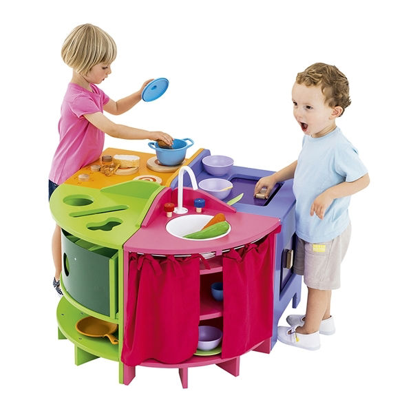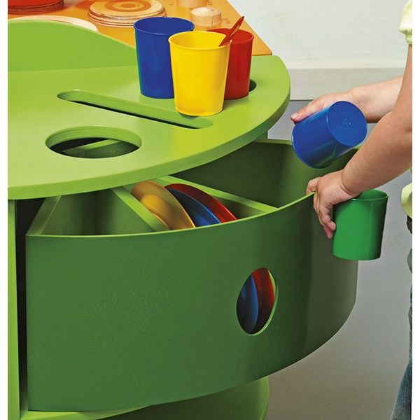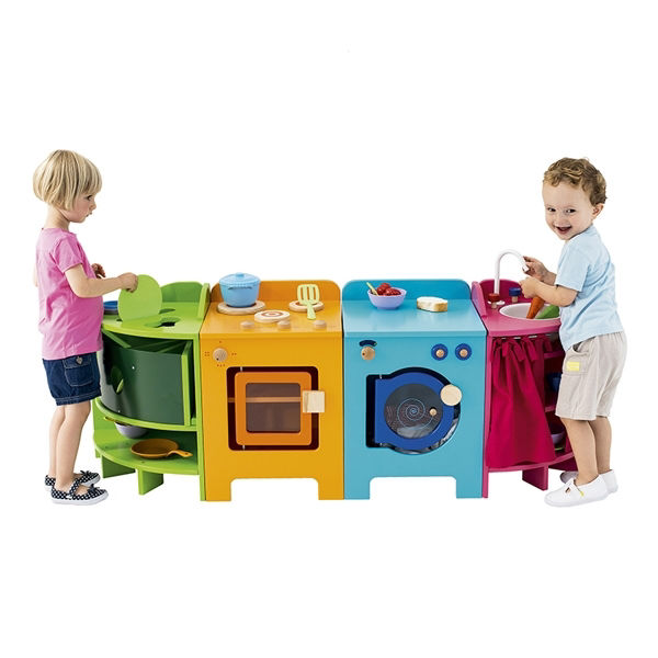 Η διαδικασία της τακτοποίησης και της καθαριότητας μετά από κάθε φανταστικό γεύμα αποκτά δομή και ρεαλισμό με αυτό το πλυντήριο πιάτων της Nathan. Τα παιδιά μπορούν να ταξινομήσουν τα σκεύη τους στις τρεις ειδικές υποδοχές και να χρησιμοποιήσουν το χαμηλό ράφι για μεγαλύτερα αντικείμενα, ενώ το πάνω ράφι αποθήκευσης με τα τρία χωρίσματα εξασφαλίζει ότι τα μαχαιροπίρουνα και τα αξεσουάρ θα παραμείνουν απόλυτα οργανωμένα. Η ασφάλεια βρίσκεται στο επίκεντρο του σχεδιασμού, καθώς η μονάδα διαθέτει ένα ειδικό σύστημα προστασίας που εμποδίζει την πτώση των ραφιών κατά τη χρήση, επιτρέποντας στα παιδιά να πειραματίζονται ελεύθερα χωρίς κίνδυνο τραυματισμού. Με συμπαγείς διαστάσεις 38x38cm, το έπιπλο ενσωματώνεται εύκολα σε κάθε θεματική γωνιά, ενισχύοντας τη λεπτή κινητικότητα και την υπευθυνότητα των παιδιών καθώς μαθαίνουν να φροντίζουν τον εξοπλισμό τους μέσα από τη μίμηση των καθημερινών εργασιών του σπιτιού.