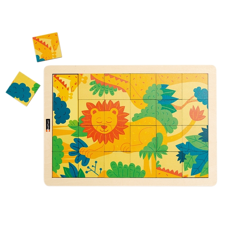 Nathan 372044 Οι Καμηλοπαρδάλεις και το Λιοντάρι - Ξύλινο Παζλ 2 σε 1