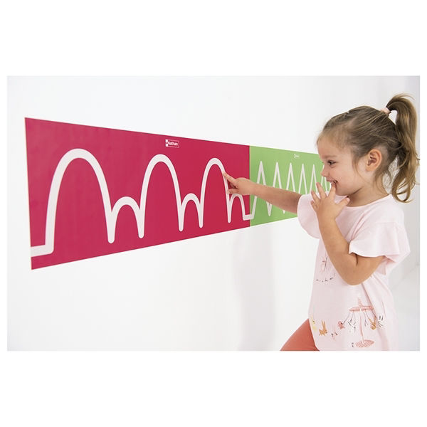 Με το μοτίβο του κύματος, τα παιδιά μαθαίνουν να ελέγχουν το χέρι τους και να αποκτούν επιδεξιότητα με τον πιο απλό τρόπο. Μπορούν να ακολουθήσουν τις γραμμές με τα δάχτυλα ή με μαρκαδόρο διαφανειών, ενώ αν γίνει λάθος, καθαρίζει πανεύκολα με λίγο σαπουνόνερο. Είναι ο πιο διασκεδαστικός τρόπος για να ετοιμαστεί κάθε μικρός μαθητής για το σχολείο, κάνοντας την εξάσκηση να μοιάζει με παιχνίδι! Μπορεί να συνδυαστεί με τα 372915,372916,372917,372919. Διαστάσεις: 75x25cm
