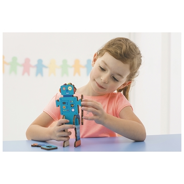 Μια φουτουριστική περιπέτεια ξεκινά από το δάπεδο! Το Nathan 387223 Τρισδιάστατο Παζλ Ρομπότ προσκαλεί τους μικρούς εφευρέτες να συναρμολογήσουν τον δικό τους ξύλινο φίλο. Αποτελείται από 6 ανθεκτικά κομμάτια που, όταν ενωθούν, δημιουργούν ένα στιβαρό ρομπότ που μπορεί να σταθεί όρθιο για παιχνίδι ή διακόσμηση. Οι τυπωμένες οδηγίες στην πίσω όψη της βάσης καθιστούν τη διαδικασία εύκολη και ευχάριστη, βοηθώντας τα παιδιά να αναπτύξουν τη λογική τους σκέψη και τον συντονισμό χεριού-ματιού. Με διαστάσεις βάσης 30x20x1cm, είναι το ιδανικό πρώτο βήμα για τη μετάβαση από το επίπεδο παζλ στην τρισδιάστατη κατασκευή, προσφέροντας μια αίσθηση ολοκλήρωσης και δημιουργικότητας.