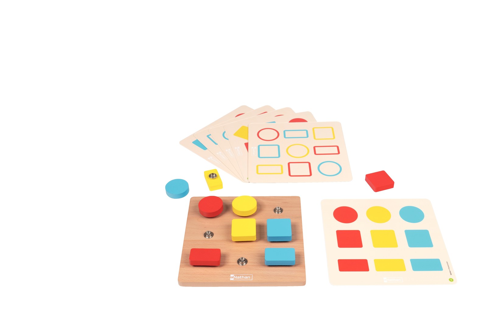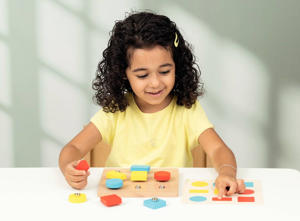 Εκπαιδευτικό παιχνίδι, για την ανάπτυξη της λεπτής κινητικότητας και αποκωδικοποίησης μοτίβων. Κουμπώστε τα χρωματιστά κομμάτια πάνω στην ξύλινη βάση, αντιγράφοντας τις 6 κάρτες-μοντέλα διπλής όψης, 2 επιπέδων δυσκολίας.