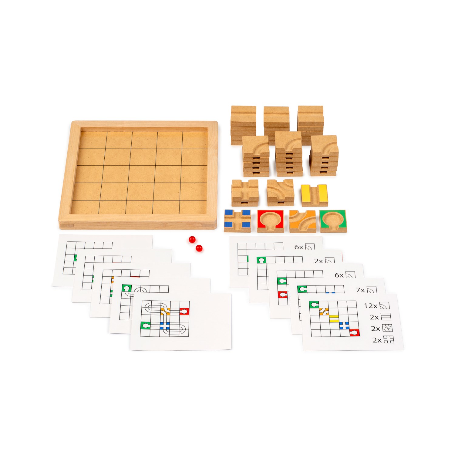 Σπάσε τον κώδικα του λαβύρινθου! Επιλέξτε μία κάρτα δραστηριοτήτων και αντιγράψτε τη διαδρομή του λαβύρινθου που απεικονίζει. Γεμίστε τα κενά, με τουβλάκια. Κρατήστε το ξύλινο ταμπλό του παιχνιδιού με τα δύο χέρια και οδηγήστε την μπίλια από το πράσινο στο κόκκινο. Αναπτύξτε κινητικές δεξιότητες και προσανατολισμό στο χώρο, ενώ παράλληλα εξερευνείτε έννοιες προγραμματισμού και επίλυσης προβλημάτων.