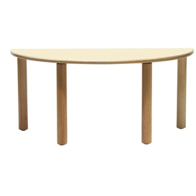 Ξύλινο ημικυκλικό τραπέζι από μασίφ ξύλο και πλακάτ θαλάσσης. Στα πόδια υπάρχει αντιολισθιτικό λαστιχάκι για την αποφυγή κραδασμών. Μένουν 2 τελευταία τεμάχια σε φυσικό και πράσινο χρώμα. Διαστάσεις:120x60cm Ύψος: 54cm